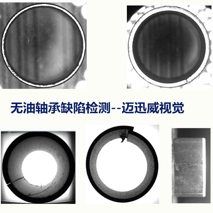 無(wú)油軸承缺陷檢測(cè)在無(wú)油軸承生產(chǎn)行業(yè)越來(lái)越引起重視,一般無(wú)油軸承需要檢測(cè)的缺陷類(lèi)型有:內(nèi)孔壁360度外觀缺陷檢測(cè),外圍側(cè)面360度缺陷檢測(cè),上下端面麻點(diǎn)缺陷檢測(cè),上下端面鈍刀缺陷,縫隙大小錯(cuò)位檢測(cè)等。